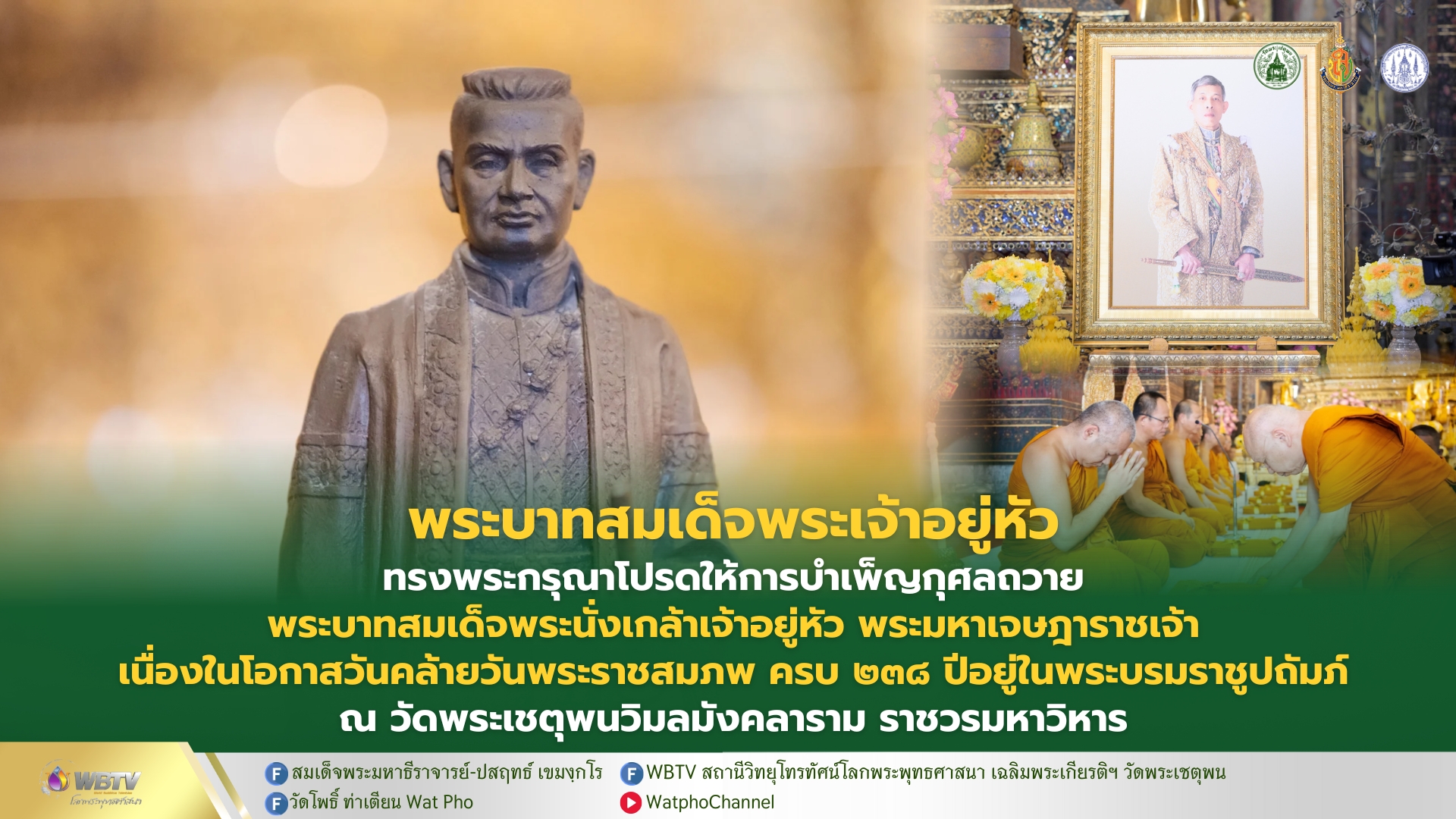 ❖ พระบาทสมเด็จพระเจ้าอยู่หัว ทรงพระกรุณาโปรดให้พิธีบำเพ็ญกุศลถวาย พระบาทสมเด็จพระนั่งเกล้าเจ้าอยู่หัว พระมหาเจษฎาราชเจ้า เนื่องในโอกาสวันคล้ายวันพระบรมราชสมภพ อยู่ในพระบรมราชูปถัมภ์