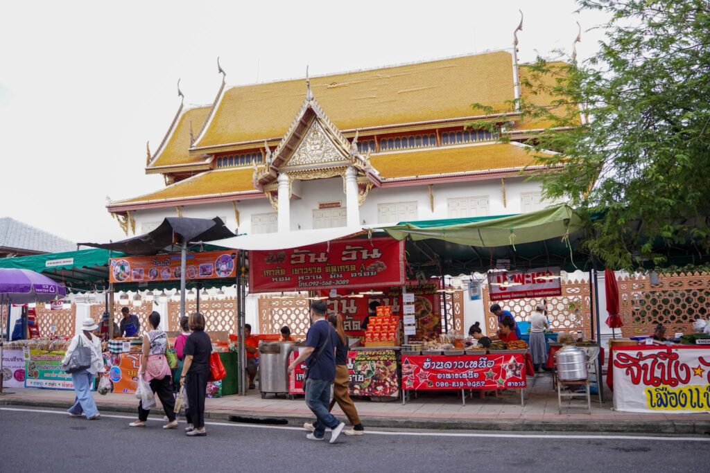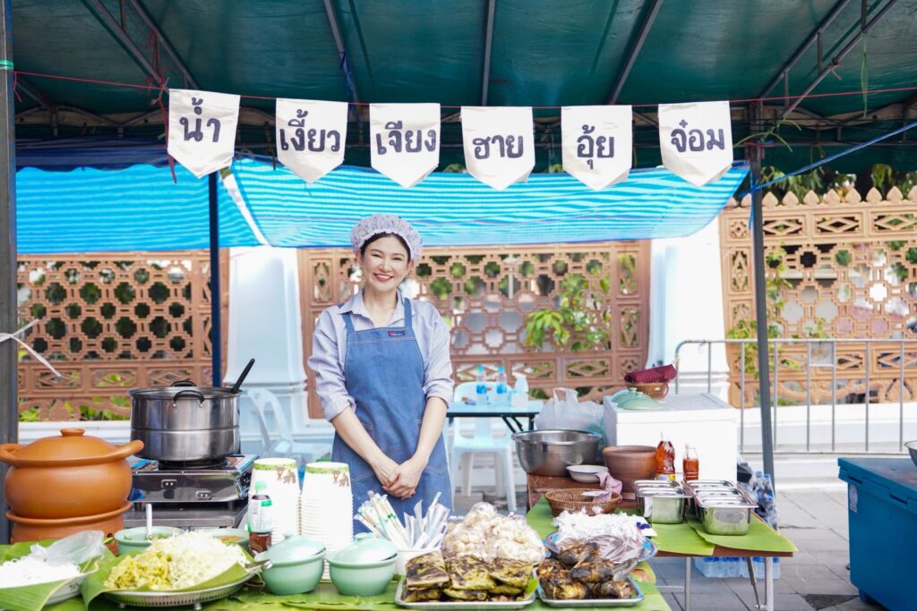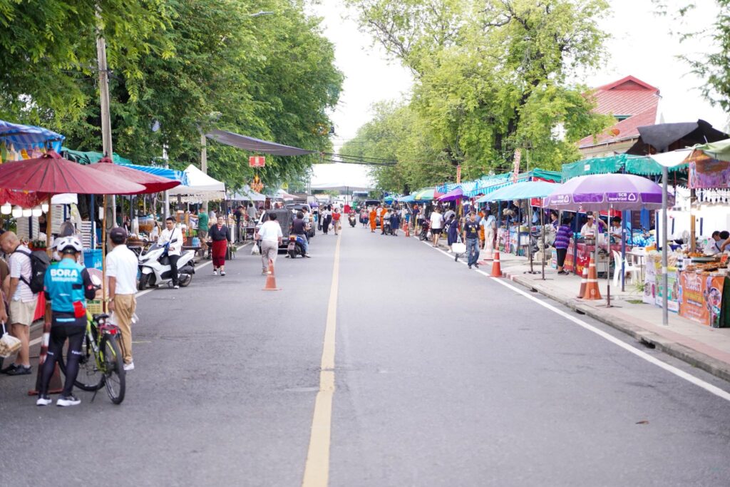มีการจำลองกาดมั๊ว แบบล้านนา เปิดโอกาสให้ผู้ชมงาน สามารถแวะ ชม ชิม ช็อป อาหารและขนมอร่อยแบบไทยล้านนาตามบูธและร้านค้าต่างๆ ทั่วบริเวณวัด