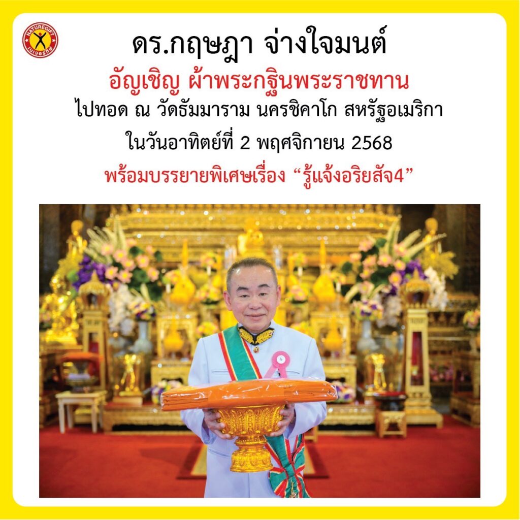 ❖ ดร.กฤษฏา จ่างใจมนต์ อัญเชิญ ผ้าพระกฐินพระราชทาน ทอด ณ วัดธัมมาราม นครชิคาโก พร้อมบรรยายพิเศษ “รู้แจ้งอริยสัจ 4” อาทิตย์ 2 พศจิกายน 2568 นี้