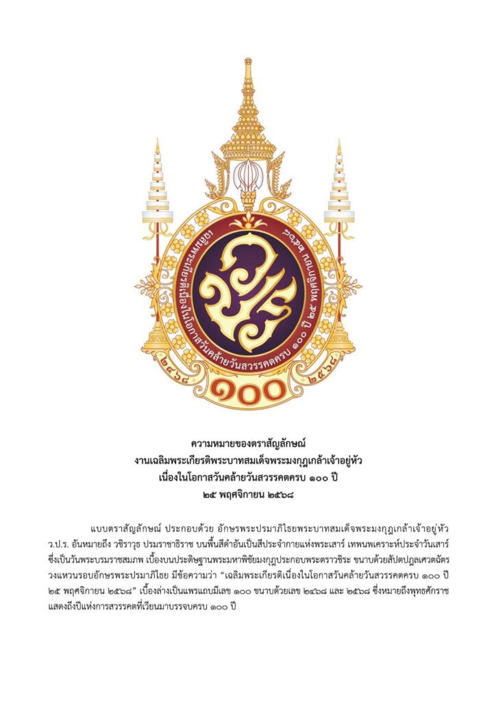 ความหมายของตราสัญลักษณ์ งานเฉลิมพระเกียรติพระบาทสมเด็จพระมงกุฎเกล้าเจ้าอยู่หัว เนื่องในโอกาสวันคล้ายวันสวรรคตครบ 100 ปี 25 พฤศจิกายน 2568