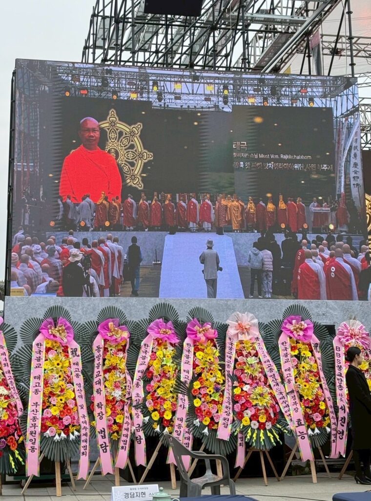 ทั้งนี้ การประชุมได้รับการสนับสนุนจากรัฐบาลประเทศเกาหลีใต้ให้จัดงาน ณ ลานหน้าพระราชวังคยองบกคุง กรุงโซล โดยนิมนต์พระสงฆ์จากประเทศที่มีวัดพระพุทธศาสนาตั้งอยู่ในประเทศเกาหลีใต้ เข้าร่วมประชุม ประกอบด้วย ไทย จีน ศรีลังกา เมียนมา สหรัฐอเมริกา เวียดนาม และเนปาล และมีสถานทูตประเทศต่างๆ เข้าร่วมในพิธีนี้ด้วย สำหรับประเทศไทย มีท่านทูตธานี แสงรัตน์ เอกอัครราชทูต ณ กรุงโซล นำศิลปวัฒนธรรมไทยมาแสดงในพิธีนี้ด้วย