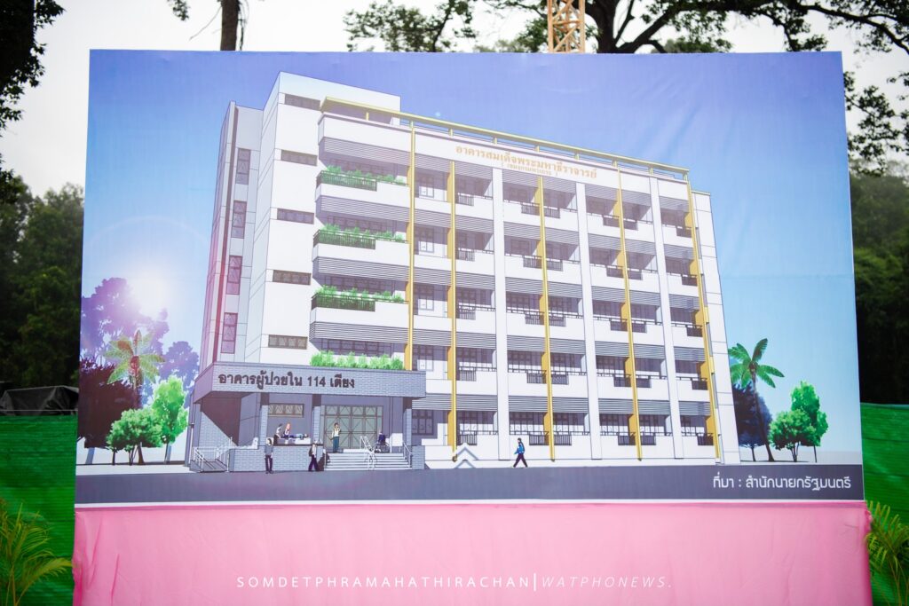 อาคารผู้ป่วยใน 114 เตียงหลังใหม่นี้ เป็นอาคาร คสล.5 ชั้น พื้นที่ใช้สอย 4,797 ตารางเมตร ได้รับการออกแบบตามแบบของกองแบบแผน กระทรวงสาธารณสุข มีความมั่นคง แข็งแรง สวยงาม รองรับผู้ป่วยค้างคืนได้เพิ่มขึ้น สามารถจัดระบบบริการได้เหมาะสมกับกลุ่มผู้ป่วยมากขึ้น โดยเฉพาะพระสงฆ์อาพาธ และกลุ่มผู้ป่วยสูงอายุ เป็นต้น