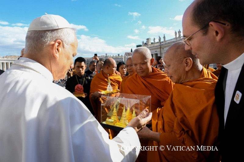 วันที่ 29 ตุลาคม 2568 สมเด็จพระมหาธีราจารย์ กรรมการมหาเถรสมาคม เจ้าคณะใหญ่หนเหนือ เจ้าอาวาสวัดพระเชตุพนวิมลมังคลาราม ผู้แทน เจ้าพระคุณสมเด็จพระสังฆราช ได้มอบถวาย สาส์นเจ้าพระคุณสมเด็จพระสังฆราช พร้อมมอบกล่องแก้ว ภายในบรรจุโมเดลรูปพระเจดีย์ทอง 4 รัชกาล แก่ สมเด็จพระสันตปาปาเลโอที่ 14 เนื่องในโอกาสทรงได้รับการสถาปนาฯ และ งานพิธีฉลองครบรอบ 60 ปี สาส์น Nostra Aetate วันที่ 29 ตุลาคม 2568 ณ หอประชุมเปาโลที่ 6 นครรัฐวาติกัน ประเทศอิตาลี เป็นการเยือนและสานต่อความสัมพันธ์สองศาสนา ที่มีมานานแต่ครั้งอดีตถึงปัจจุบัน