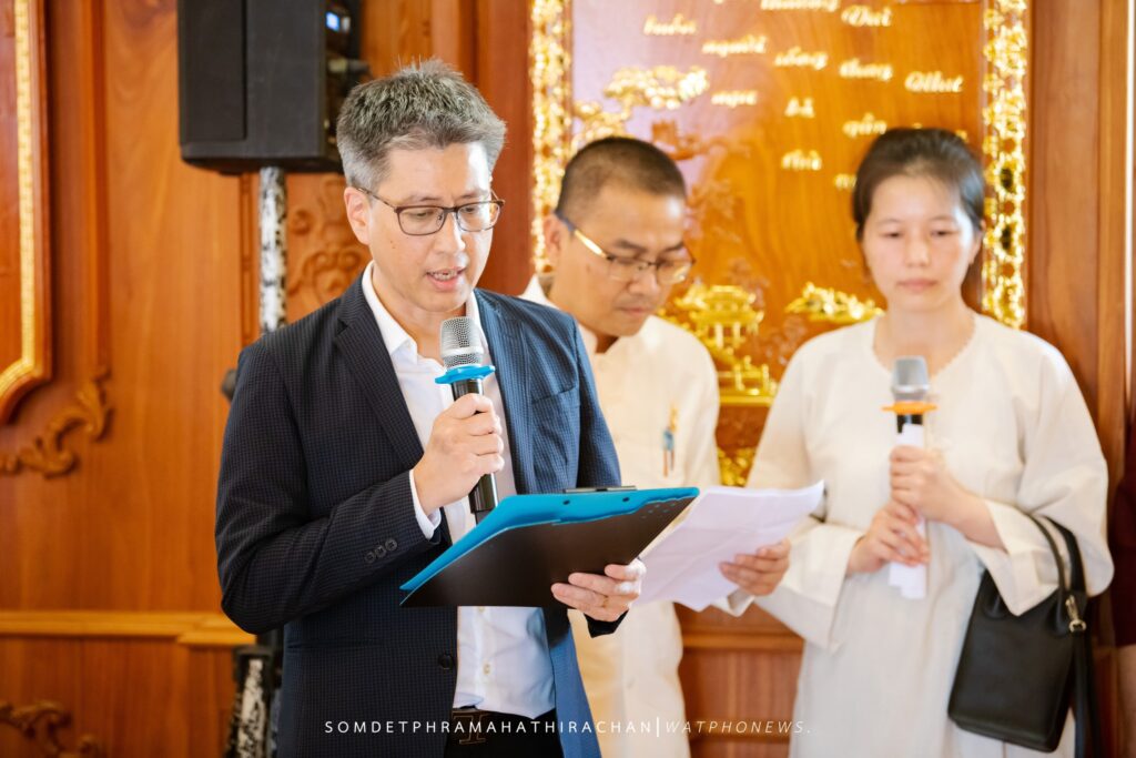 โดยมี พระเถราจารย์ ซือมินหัน เจ้าอาวาสวัดเฟื่องหาย รองเจ้าคณะจังหวัดโฮจิมินห์ พระครูวิเทศชยาภรณ์ เจ้าอาวาสวัดพุทธเกษร นางสาววีรกา มุทิตาภรณ์ กงสุลใหญ่ ณ นครโฮจิมินห์ นายกุลเชฏฐ์ ธาราจันทร์ รองกรรมการผู้จัดการใหญ่ เอสซีจี เคมิคอลส์ จำกัด (มหาชน) พร้อมคณะผู้บริหาร เจ้าหน้าที่ ศิษยานุศิษย์ สาธุชน ร่วมถวายการต้อนรับและร่วมพิธี