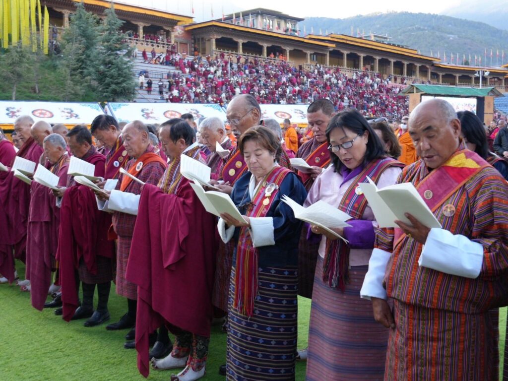 ภาคบ่าย สมเด็จพระราชาธิบดีจิกมี ซิงเย วังชุก (Jigme Singye Wangchuck) สมเด็จพระราชาธิบดีแห่งราชอาณาจักรภูฏานรัชกาลปัจจุบัน สมเด็จพระราชินี สมเด็จพระราชชนนี และพระราชวงศานุวงศ์ภูฏาน เสด็จพระราชดำเนินและเสด็จไปทรงเป็นประธานในพิธีปิดงานสวดมนต์เพื่อสันติภาพโลก