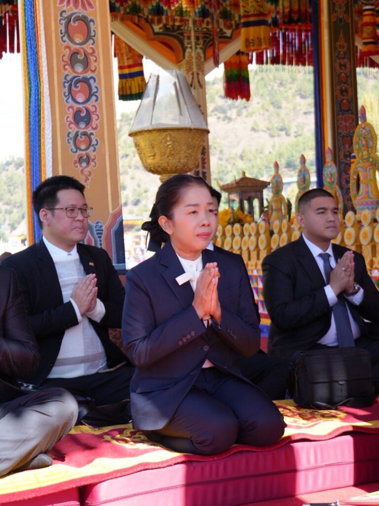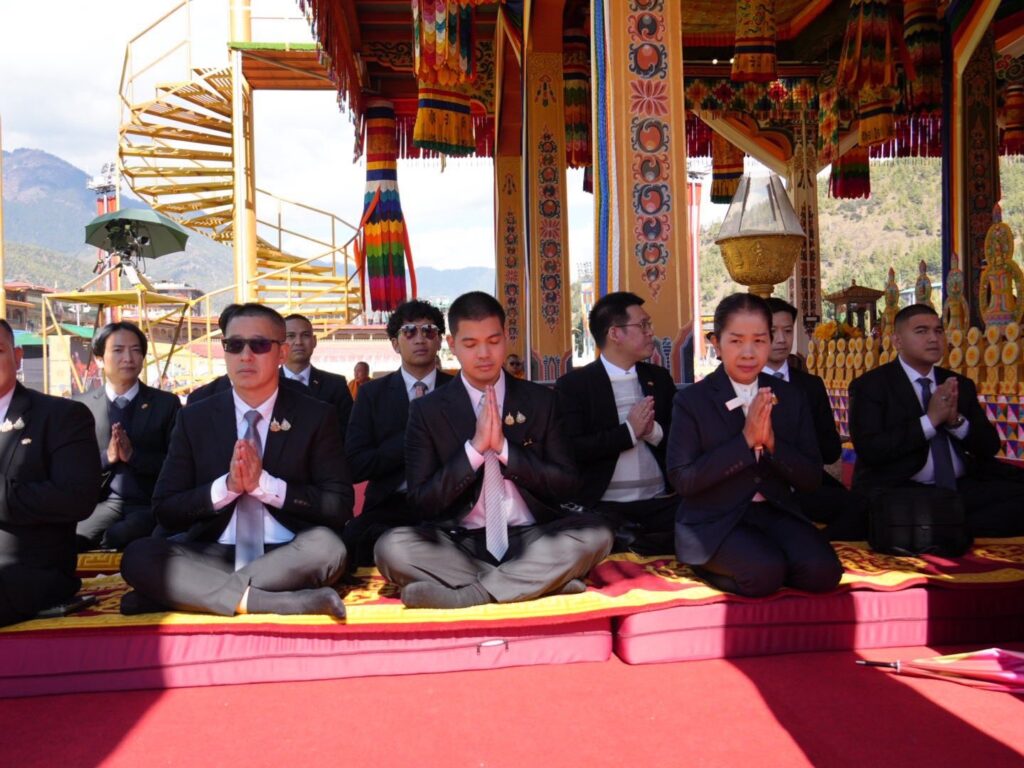 อนึ่ง สมเด็จพระราชาธิบดีจิกมี ซิงเย วังชุก มีพระราชดำรัส ถวายพระพรแด่พระบาทสมเด็จพระเจ้าอยู่หัว และสมเด็จพระนางเจ้าฯ พระบรมราชินี สมเด็จพระอริยวงศาคตญาณ สมเด็จพระสังฆราช สกลมหาสังฆปริณายก พร้อมทั้งทรงพระราชปรารภตั้งพระราชสัตยาธิษฐานเพื่อความรุ่งเรืองแห่งราชอาณาจักรไทย และสัมพันธไมตรีอันมั่นคงสถาพรระหว่างราชอาณาจักรภูฏานกับราชอาณาจักรไทย