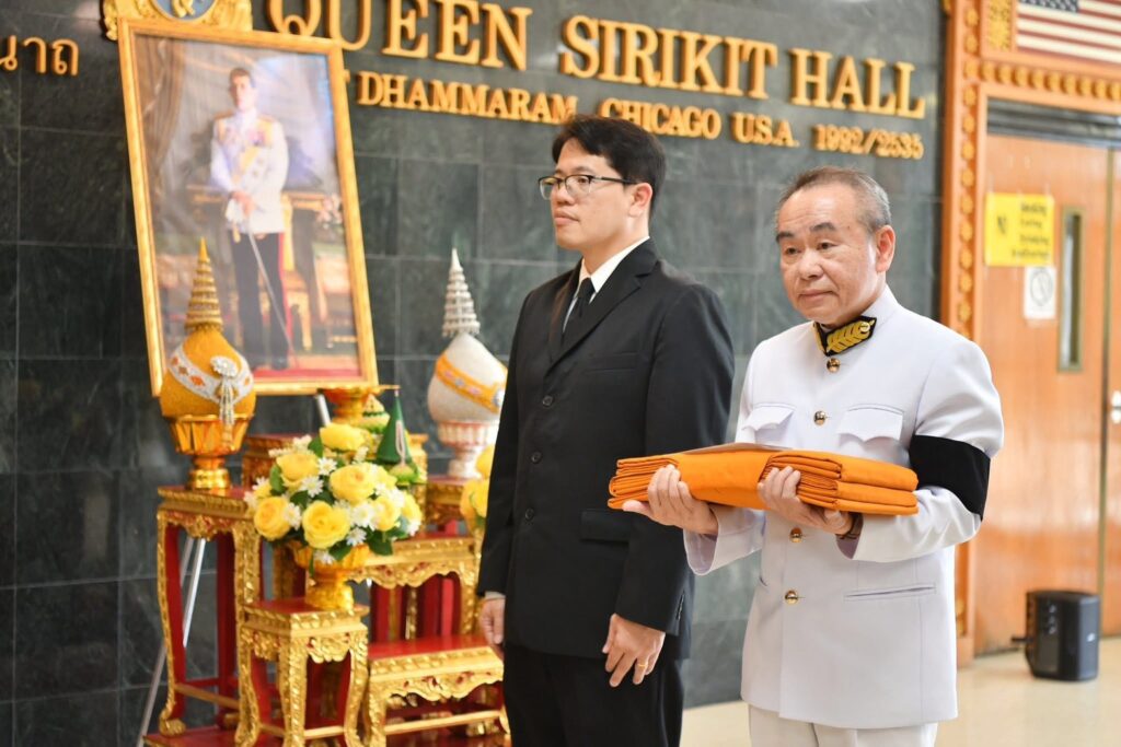 โดยมี นาย วรพล เจนสวัสดิชัย รักษาการแทนกงสุลใหญ่ นครชิคาโก พร้อมข้าราชการ คณะกรรมอุปถัมภ์ อุบาสก อุบาสิกา สาธุชนในนครชิคาโกและมลรัฐใกล้เคียง ร่วมอนุโมทนาพิธีถวายผ้าพระกฐิน ณ วัดธัมมาราม นครชิคาโก สหรัฐอเมริกา