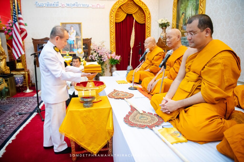วันที่ 2 พ.ย. 68 เวลา 13.00 น. ตามเวลาในท้องถิ่นนครชิคาโก พระบาทสมเด็จพระเจ้าอยู่หัว ทรงพระกรุณาโปรดเกล้าฯ พระราชทานผ้าพระกฐินให้ ดร.กฤษฎา จ่างใจมนต์ ประธานกรรมการบริหารบริษัท เนเจอร์กิฟ จำกัด ตามที่ขอพระราชทาน เพื่อน้อมนำไปถวายพระสงฆ์จำพรรษากาลถ้วนไตรมาส ณ วัดธัมมาราม นครชิคาโก สหรัฐอเมริกา