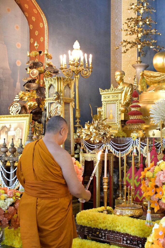 จากนั้น เวลา 08.30 น. พระเดชพระคุณพระธรรมวชิราธิบดี เจ้าคณะภาค 17 เจ้าอาวาสวัดเบญจมบพิตรดุสิตวนาราม เป็นประธานฝ่ายสงฆ์ และนางยุพา ทวีวัฒนะกิจบวร ปลัดสำนักนายกรัฐมนตรี เป็นประธานฝ่ายฆราวาส ในพิธีบำเพ็ญกุศลถวายพระราชกุศลแด่พระบาทสมเด็จพระจุลจอมเกล้าเจ้าอยู่หัว เนื่องในวันปิยมหาราช 2568
