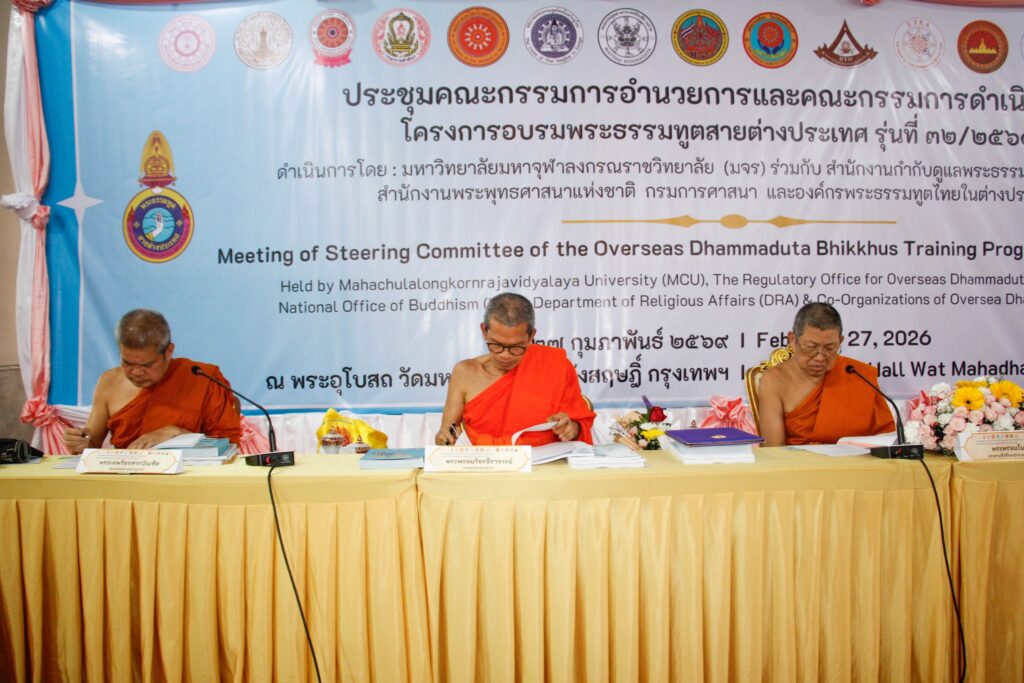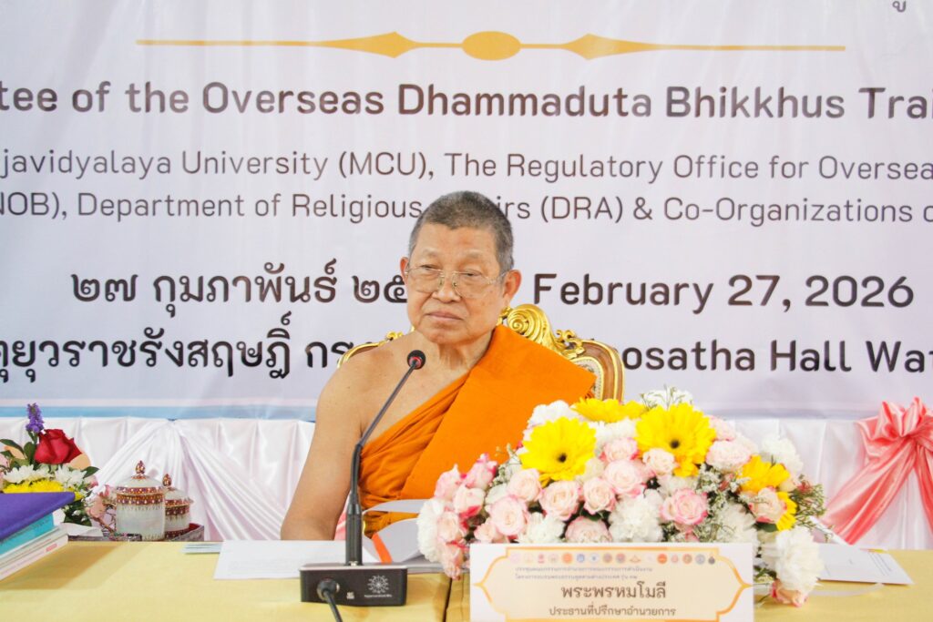 วันศุกร์ที่ 27 กุมภาพันธ์ พ.ศ.2569 เวลา 15.09 น. พระพรหมโมลี กรรมการมหาเถรสมาคม ประธานสำนักงานกำกับดูแลพระธรรมทูตไปต่างประเทศ เป็นประธานที่ประชุม คณะกรรมการอำนวยการ และคณะกรรมการดำเนินงานโครงการอบรมพระธรรมทูตสายต่างประเทศ รุ่นที่ 32/2569