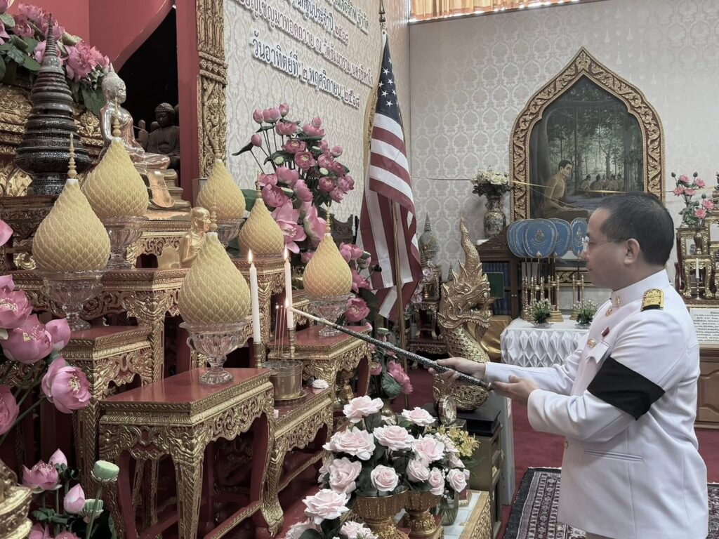 On October 30th, 2025, the Royal Thai Consulate-General, Chicago hosted a seventh-day Buddhist Chanting memorial ceremony with the Thai communities in Chicago and nearby areas to dedicate merit to Her Majesty Queen Sirikit The Queen Mother at Wat Dhammaram, Chicago. The ceremony was presided over by Mr. Varapol Chensavasdijai, Acting Consul-General and attended by officials together with members of Thai communities.