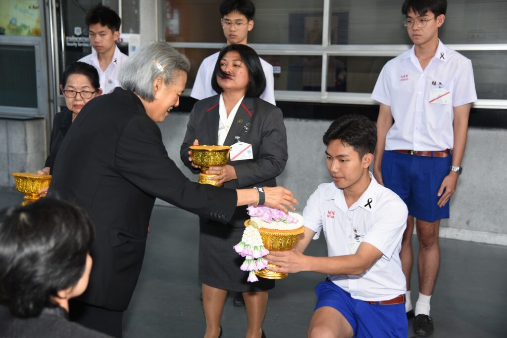 การถวายประกาศเกียรติคุณ แก่ผู้สนับสนุนการจัดการสอนภาษาฝรั่งเศส ครั้งนี้ จัดขึ้น ณ หอประชุม หลุยส์-มารีย์ แกรนด์ ฮอลล์ ชั้น 6 อาคารนักบุญหลุยส์-มารีย์ โรงเรียนอัสสัมชัญ เขตบางรัก กรุงเทพมหานคร มี คุณหญิงวงจันทร์ พินัยนิติศาสตร์ อุปนายกสมาคมครูภาษาฝรั่งเศสแห่งประเทศไทยฯ และนายฌ็อง-โกลด ปวงเบิฟ (Jean-Claude Poimbœuf) เอกอัครราชทูตฝรั่งเศสประจำประเทศไทย ภราดา ดร.เดชาชัย ศรีพิจารณ์ ผู้อำนวยการโรงเรียนอัสสัมชัญ พร้อมคณะกรรมการบริหารโรงเรียน เฝ้ารับเสด็จฯ