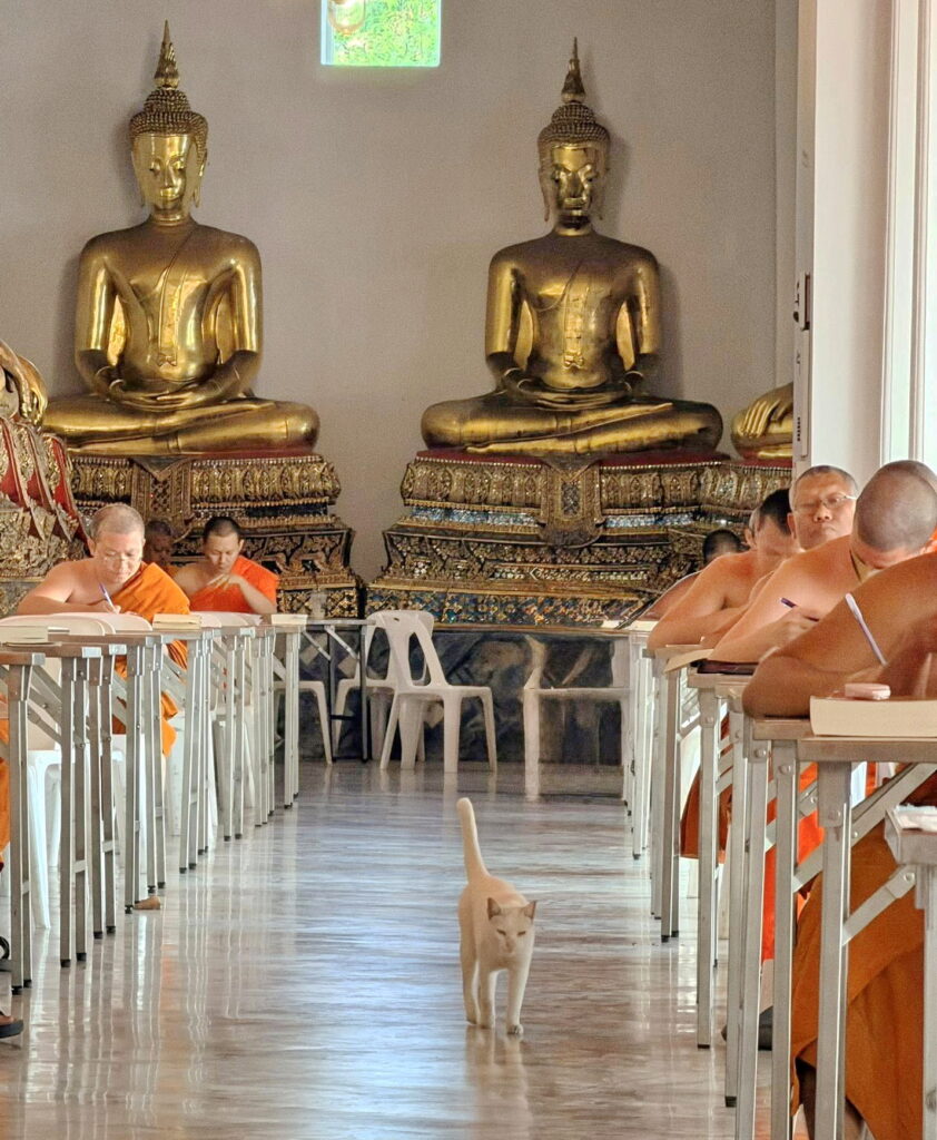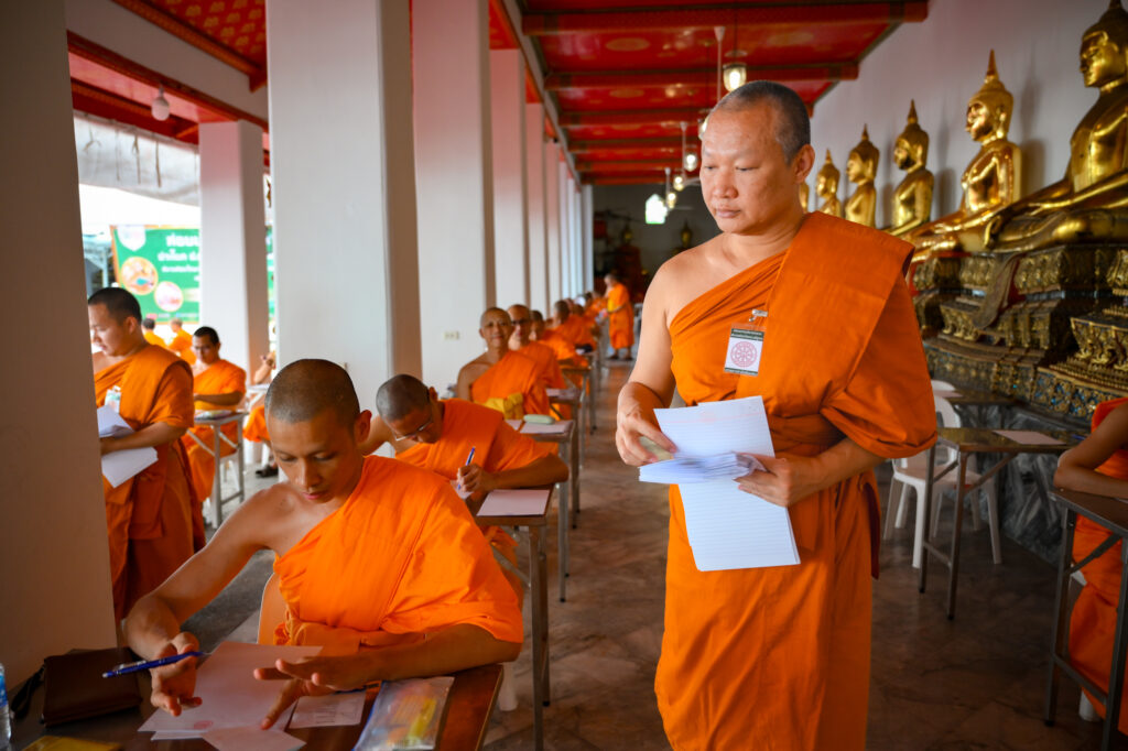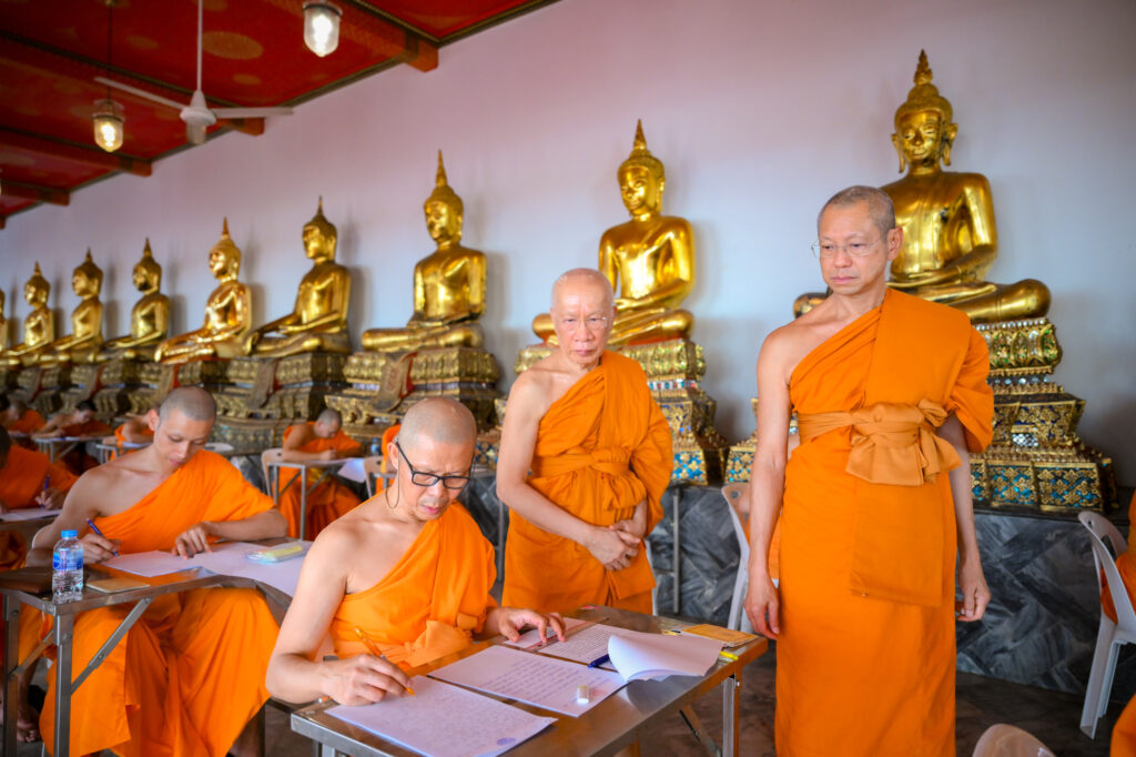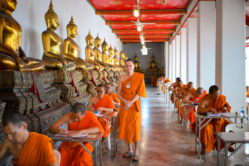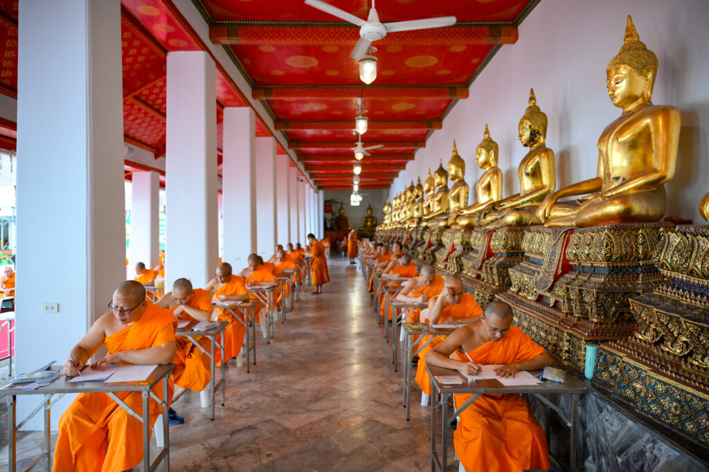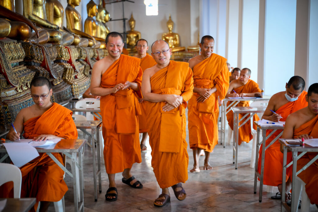 พระระเบียงพระอุโบสถวัดพระเชตุพน ซึ่งเป็นสถานที่จัดสอบ มีพระพุทธรูปนับร้อยเรียงรายเป็นแนวยาวสวยงาม เสมือนเป็นป้อมปราการรอบนอก เป็นประจักษ์พยานที่เข้มแข็งด้วยธรรมวินัยที่พระธรรมทายาทร่ำเรียนเพื่อสืบต่อ ทำให้องค์แทนแห่งสมเด็จพระสัมมาสัมพุทธเจ้าในโบสถ์ หรือ พระพุทธเทวปฏิมากร ทรงยินดี
