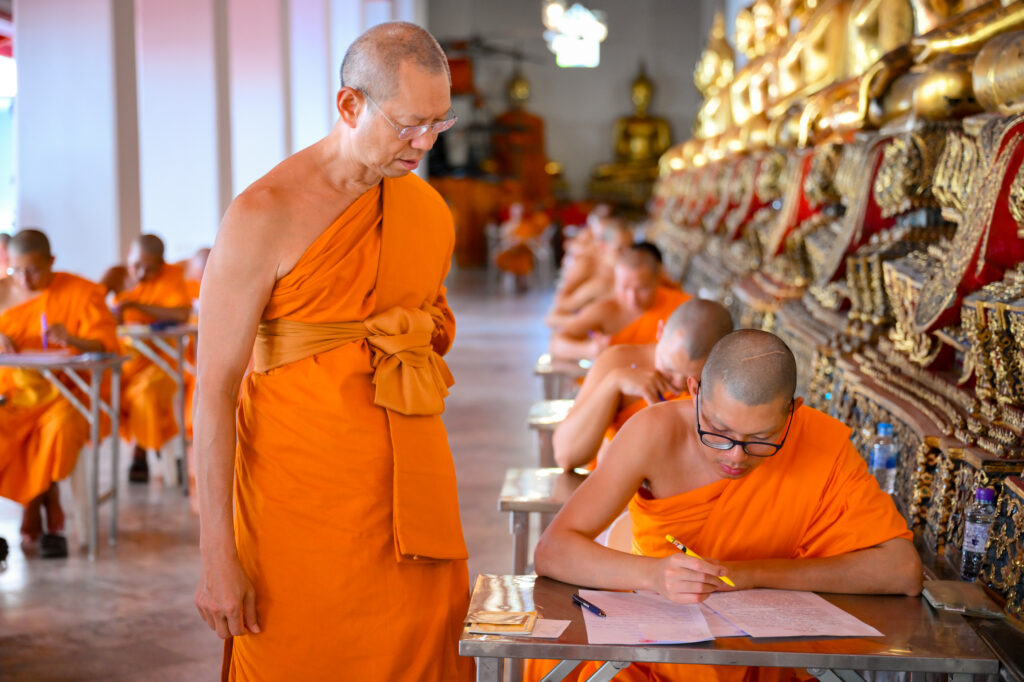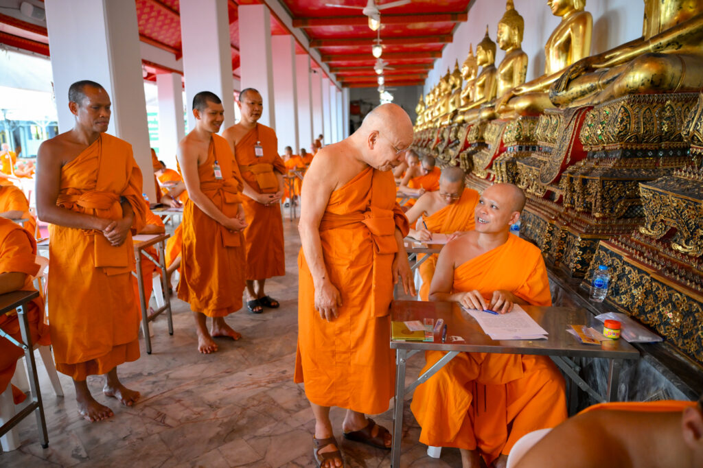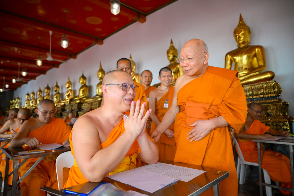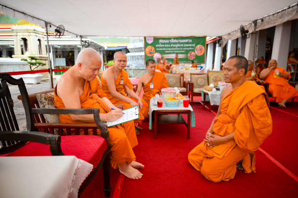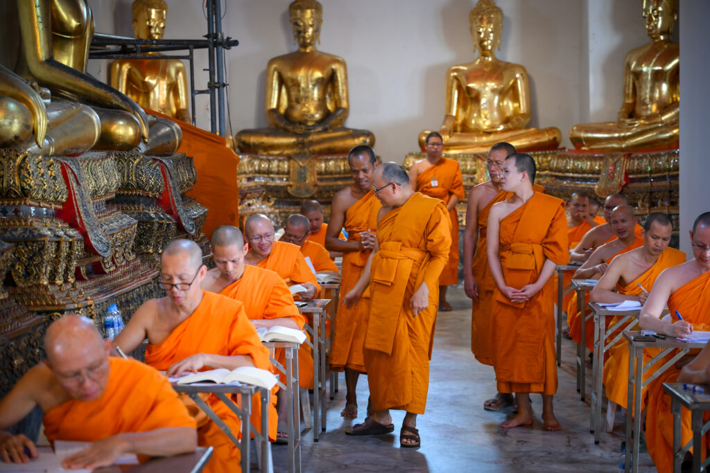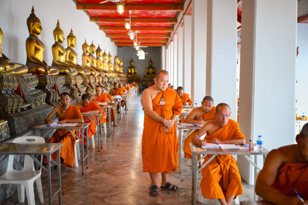 พระระเบียงพระอุโบสถวัดพระเชตุพน ซึ่งเป็นสถานที่จัดสอบ มีพระพุทธรูปนับร้อยเรียงรายเป็นแนวยาวสวยงาม เสมือนเป็นป้อมปราการรอบนอก เป็นประจักษ์พยานที่เข้มแข็งด้วยธรรมวินัยที่พระธรรมทายาทร่ำเรียนเพื่อสืบต่อ ทำให้องค์แทนแห่งสมเด็จพระสัมมาสัมพุทธเจ้าในโบสถ์ หรือ พระพุทธเทวปฏิมากร ทรงยินดี