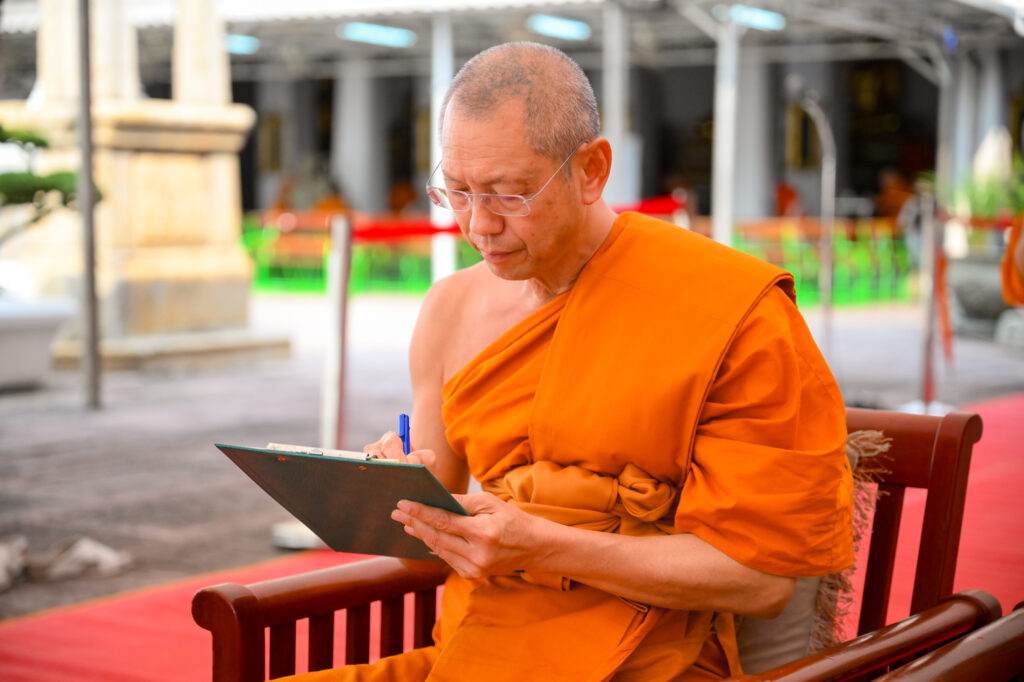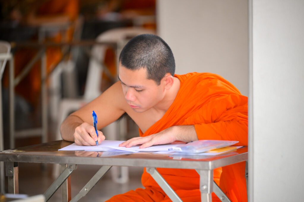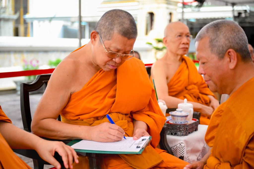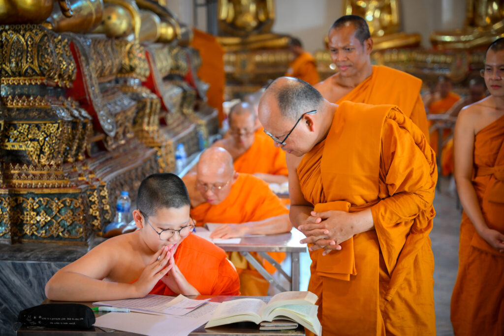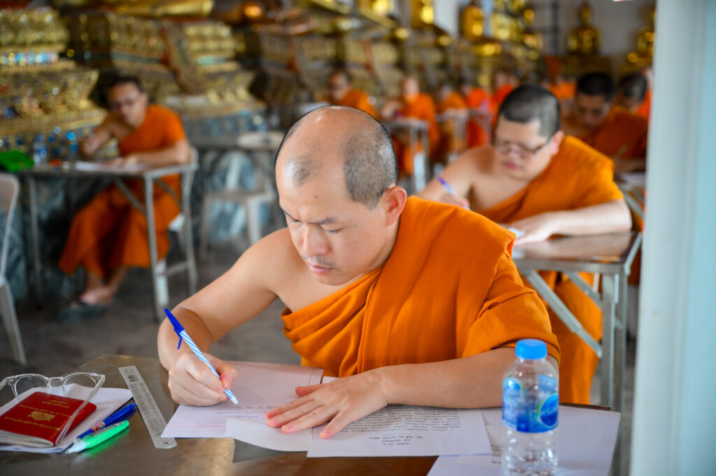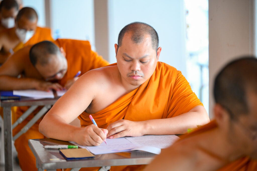 พระระเบียงพระอุโบสถวัดพระเชตุพน ซึ่งเป็นสถานที่จัดสอบ มีพระพุทธรูปนับร้อยเรียงรายเป็นแนวยาวสวยงาม เสมือนเป็นป้อมปราการรอบนอก เป็นประจักษ์พยานที่เข้มแข็งด้วยธรรมวินัยที่พระธรรมทายาทร่ำเรียนเพื่อสืบต่อ ทำให้องค์แทนแห่งสมเด็จพระสัมมาสัมพุทธเจ้าในโบสถ์ หรือ พระพุทธเทวปฏิมากร ทรงยินดี