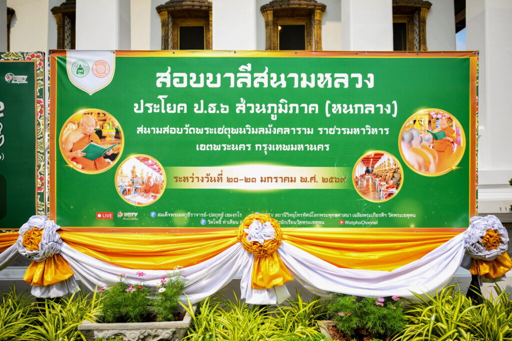เมื่อวันที่ 20 มกราคม 2569 ที่ผ่านมา เจ้าประคุณ สมเด็จพระมหาธีราจารย์ เจ้าคณะใหญ่หนเหนือ เจ้าอาวาสวัดพระเชตุพนวิมลมังคลาราม ในฐานะเจ้าสำนักเรียนวัดพระเชตุพนวิมลมังคลาราม เมตตาเป็นประธานในการเปิดสอบบาลีสนามหลวง ประจำปีพุทธศักราช 2569 โดยสำนักงานแม่กองบาลีสนามหลวง กำหนดให้วัดพระเชตุพนวิมลมังคลาราม เป็นสนามสอบ ชั้นประโยค ป.ธ.6 ส่วนภูมิภาค (หนกลาง) ระหว่างวันที่ 20 – 21 มกราคม 2569 ณ พระอุโบสถ วัดพระเชตุพนวิมลมังคลาราม ราชวรมหาวิหาร แขวงพระบรมมหาราชวัง เขตพระนคร กรุงเทพมหานคร