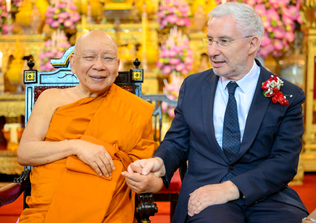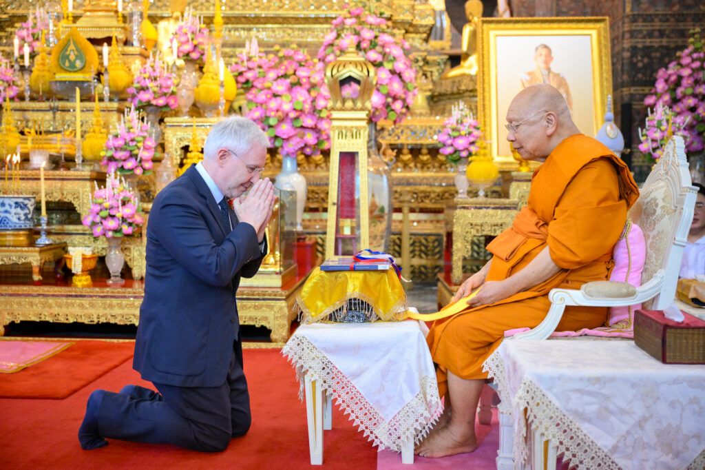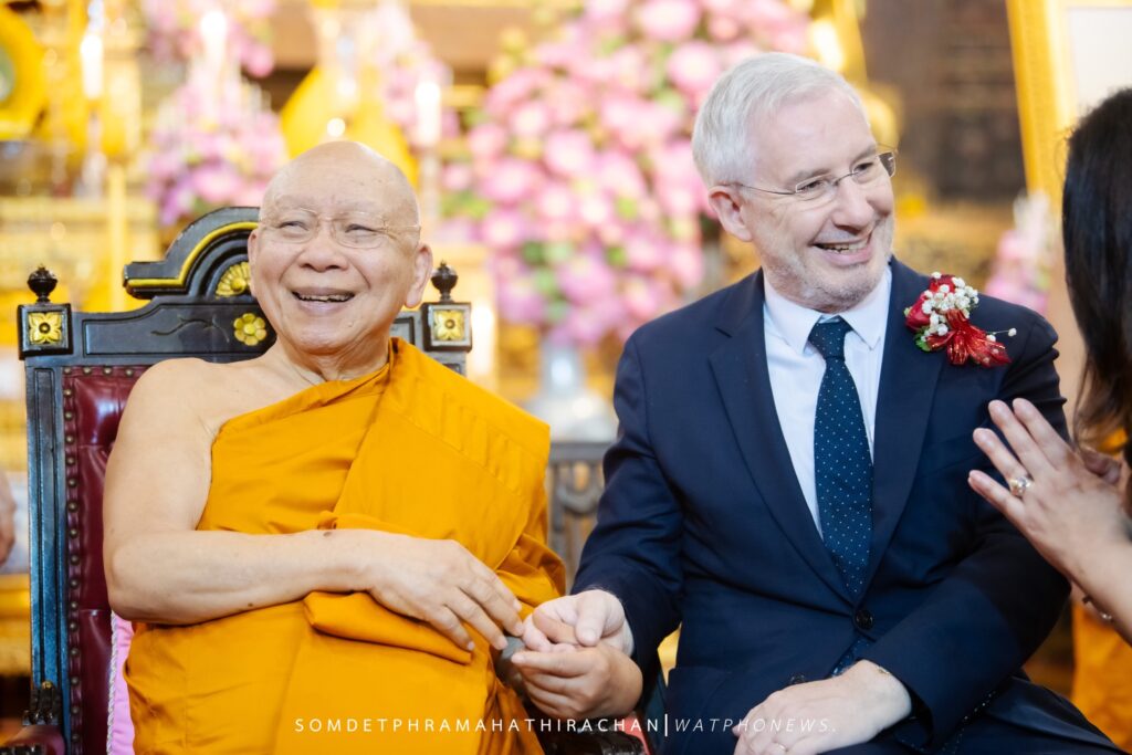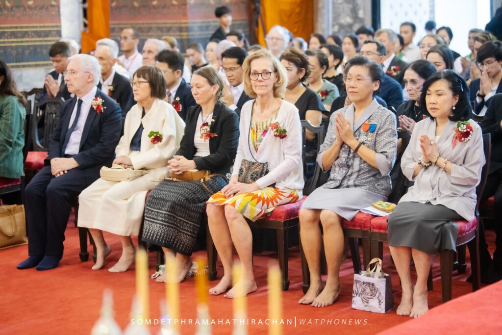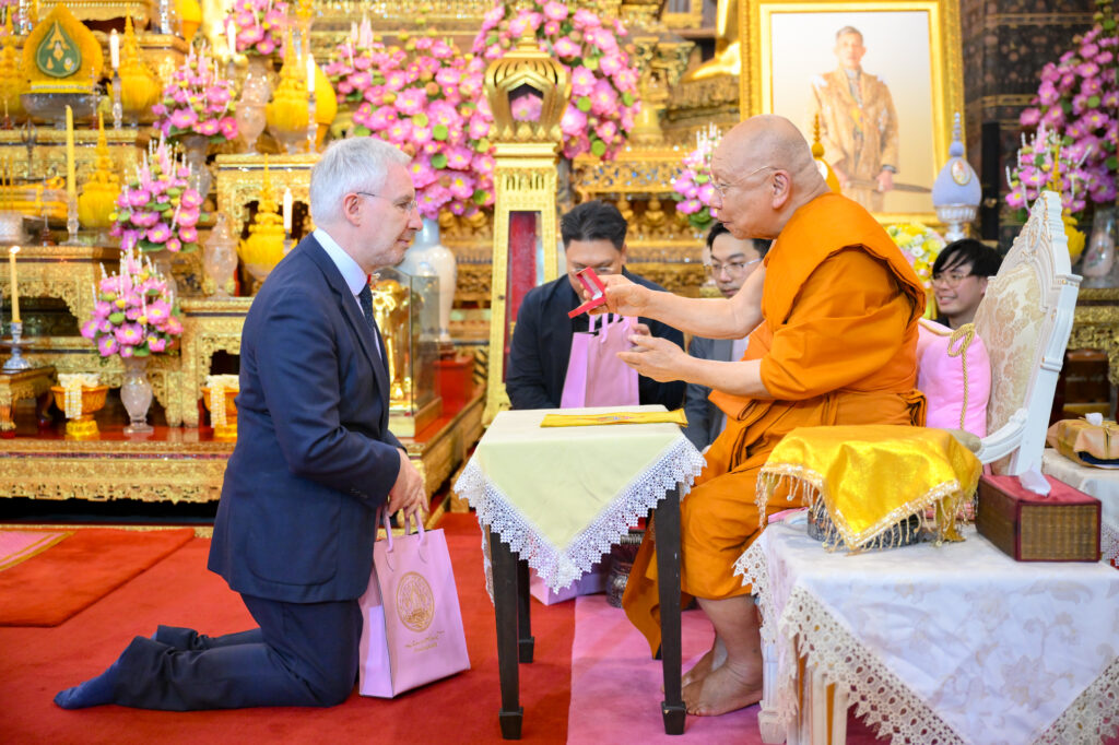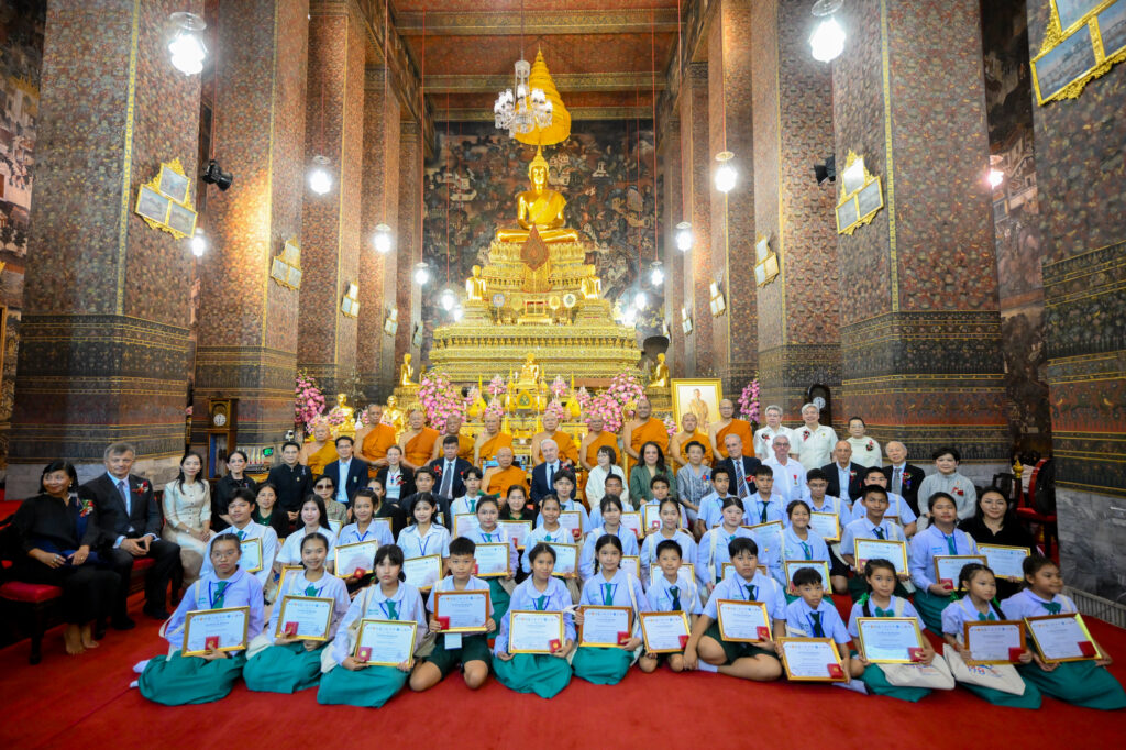 วันเสาร์ ที่ 7 กุมภาพันธ์ 2569 เวลา 17.00 น. เจ้าประคุณ สมเด็จพระมหาธีราจารย์ เจ้าคณะใหญ่หนเหนือ เจ้าอาวาสวัดพระเชตุพนวิมลมังคลาราม เป็นประธานปิดการอบรมและมอบเกียรติบัตรผู้ผ่านการอบรมภาษาฝรั่งเศสแก่ นักเรียนศูนย์ศึกษาพระพุทธศาสนาวันอาทิตย์ วัดพระเชตุพน รุ่นที่ 2 โดยมี H.E. Mr.Jean-Claude POIMBOEUF เอกอัครราชทูตฝรั่งเศสประจำประเทศไทย ดร.ศศิธารา พิชัยชาญณรงค์ ประธานชมรมสมาคมเครื่องราชอิสริยาภรณ์ฝรั่งเศสของประเทศไทย บริษัท ไทยเบฟเวอเรจ จำกัด (มหาชน) โดย คุณฐาปน สิริวัฒนภักดี และเครือเจริญโภคภัณฑ์ โดย คุณภัคพล งามลักษณ์ พร้อมด้วยคณะครู นักเรียน ร่วมพิธี ณ พระอุโบสถ วัดพระเชตุพนวิมลมังคลาราม ราชวรมหาวิหาร แขวงพระบรมมหาราชวัง เขตพระนคร กรุงเทพมหานคร