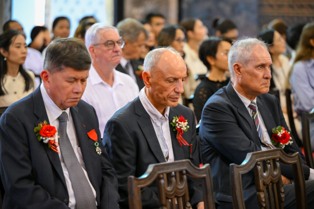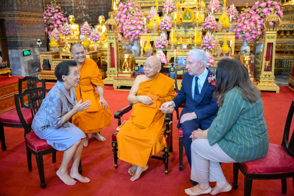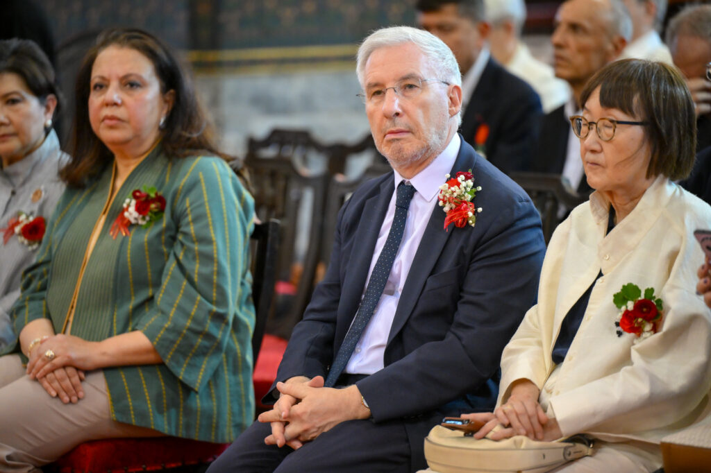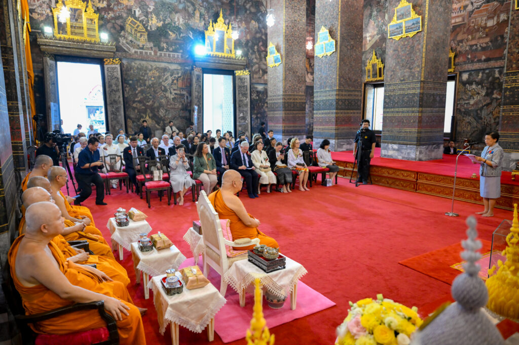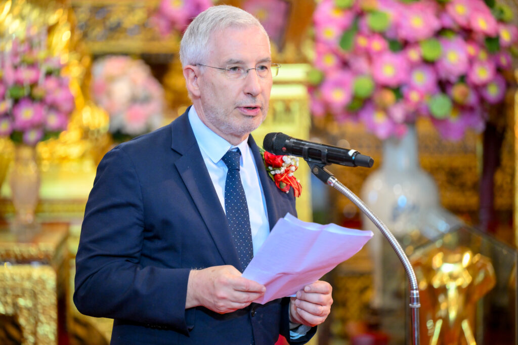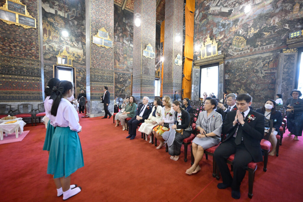 วันเสาร์ ที่ 7 กุมภาพันธ์ 2569 เวลา 17.00 น. เจ้าประคุณ สมเด็จพระมหาธีราจารย์ เจ้าคณะใหญ่หนเหนือ เจ้าอาวาสวัดพระเชตุพนวิมลมังคลาราม เป็นประธานปิดการอบรมและมอบเกียรติบัตรผู้ผ่านการอบรมภาษาฝรั่งเศสแก่ นักเรียนศูนย์ศึกษาพระพุทธศาสนาวันอาทิตย์ วัดพระเชตุพน รุ่นที่ 2 โดยมี H.E. Mr.Jean-Claude POIMBOEUF เอกอัครราชทูตฝรั่งเศสประจำประเทศไทย ดร.ศศิธารา พิชัยชาญณรงค์ ประธานชมรมสมาคมเครื่องราชอิสริยาภรณ์ฝรั่งเศสของประเทศไทย บริษัท ไทยเบฟเวอเรจ จำกัด (มหาชน) โดย คุณฐาปน สิริวัฒนภักดี และเครือเจริญโภคภัณฑ์ โดย คุณภัคพล งามลักษณ์ พร้อมด้วยคณะครู นักเรียน ร่วมพิธี ณ พระอุโบสถ วัดพระเชตุพนวิมลมังคลาราม ราชวรมหาวิหาร แขวงพระบรมมหาราชวัง เขตพระนคร กรุงเทพมหานคร