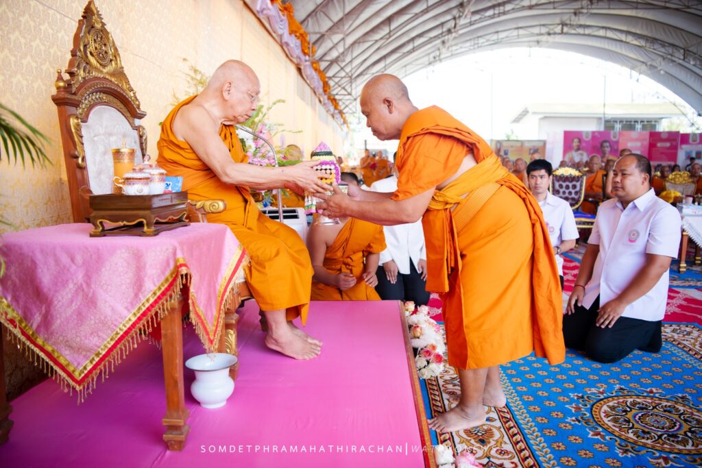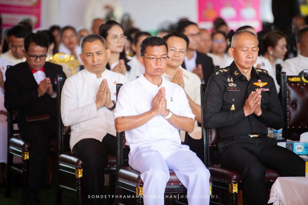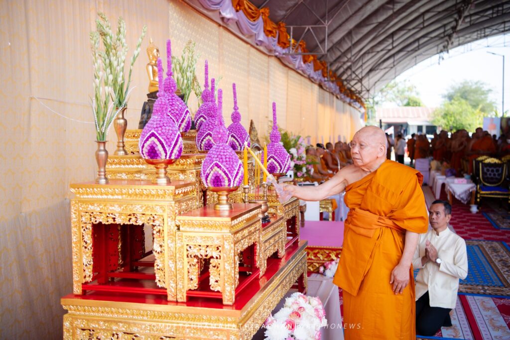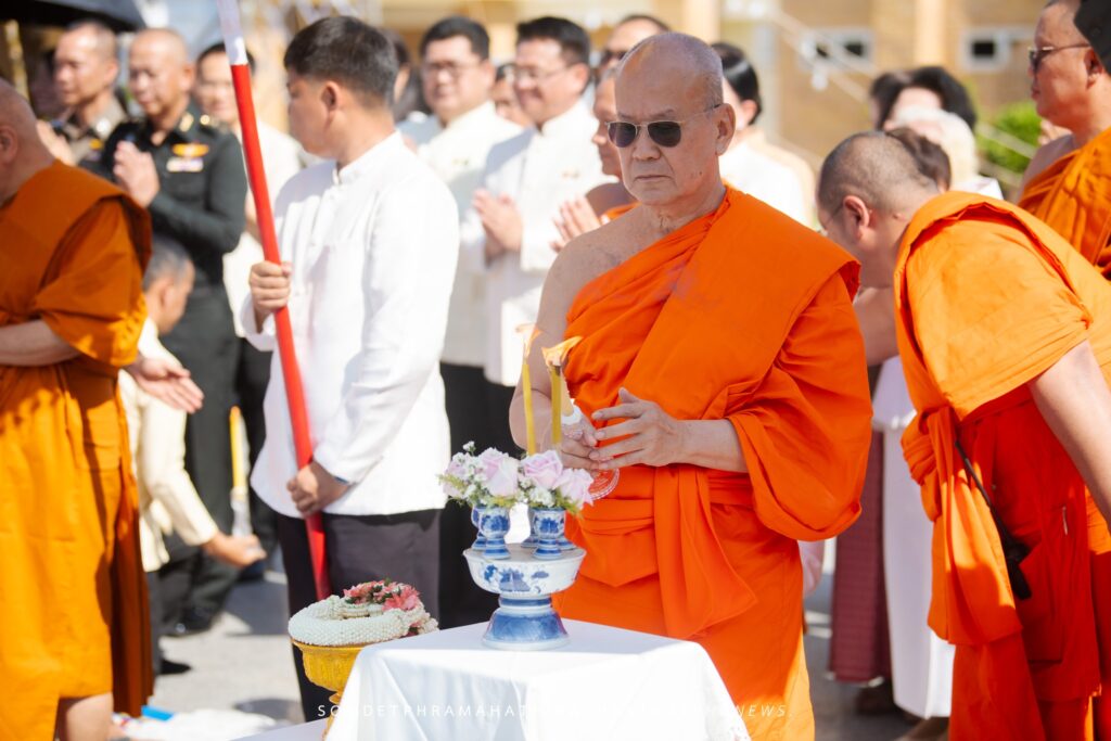 พระพรหมสิทธิ เจ้าคณะภาค 11 เจ้าอาวาสวัดสระเกศ พระพรหมวัชรธีราจารย์ อธิการบดีมหาวิทยาลัยมหาจุฬาลงกรณราชวิทยาลัย พระครูปริยัติกิจธำรง รักษาการเจ้าคณะจังหวัดสุรินทร์ พระครูปริยัติวิสุทธิคุณ รองอธิการบดีวิทยาเขตสุรินทร์ พระเถรานุเถระ พร้อมด้วย นายประภาส ศรีจันทร์เวียง รองผู้ว่าราชการจังหวัดสุรินทร์ นายสมเกียรติ สุกิจวนิช ดร.นวรัตน์ เพรชมาก และคณะศิษยานุศิษย์ สาธุชน ร่วมพิธี ณ มหาวิทยาลัยมหาจุฬาลงกรณราชวิทยาลัย วิทยาเขตสุรินทร์ จังหวัดสุรินทร์