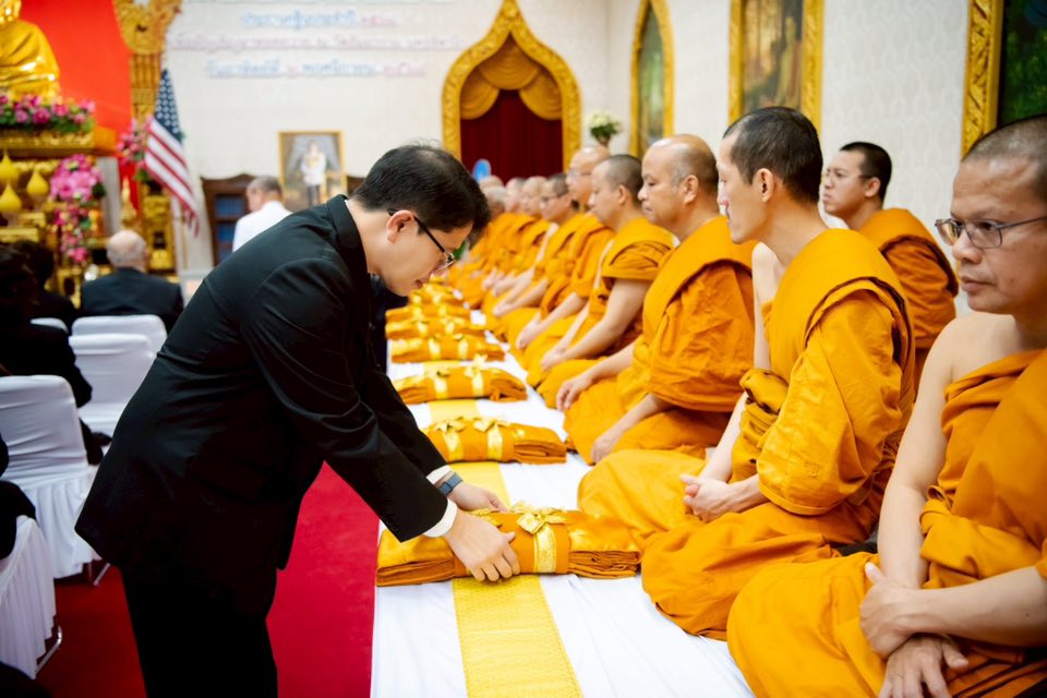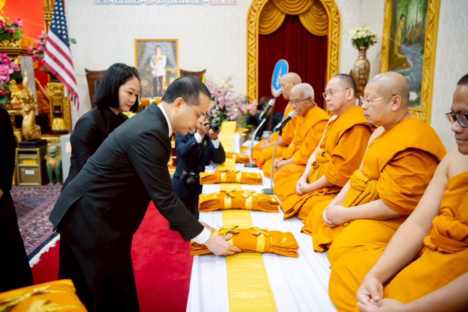 โดยมี นายวรพล เจนสวัสดิชัย รักษาการแทนกงสุลใหญ่ นครชิคาโก ดร.กฤษฎา จ่างใจมนต์ พร้อมข้าราชการ คณะกรรมการอุปถัมภ์ อุบาสก อุบาสิกา สาธุชนในนครชิคาโกและมลรัฐใกล้เคียง ร่วมบำเพ็ญกุศล ณ วัดธัมมาราม นครชิคาโก สหรัฐอเมริกา